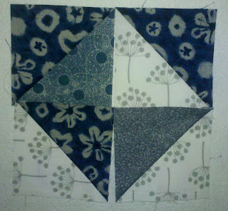 I recently made a bunch of half square triangles with the idea of making one or two small cushions to go with my large needlepoint cushion under construction. (Actually it's been 'under construction' since about 1979 when I was living in Greece and saw this design - or something like it - on a tiled wall. I loved it then and still think it's striking.