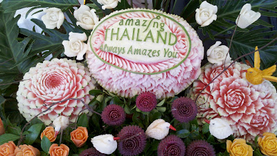 Also in Darling harbour...... flowers??? All beautifully carved from fruit and vegetables. I don't know how these soft fruits stand up to the complex treatment - a real art.